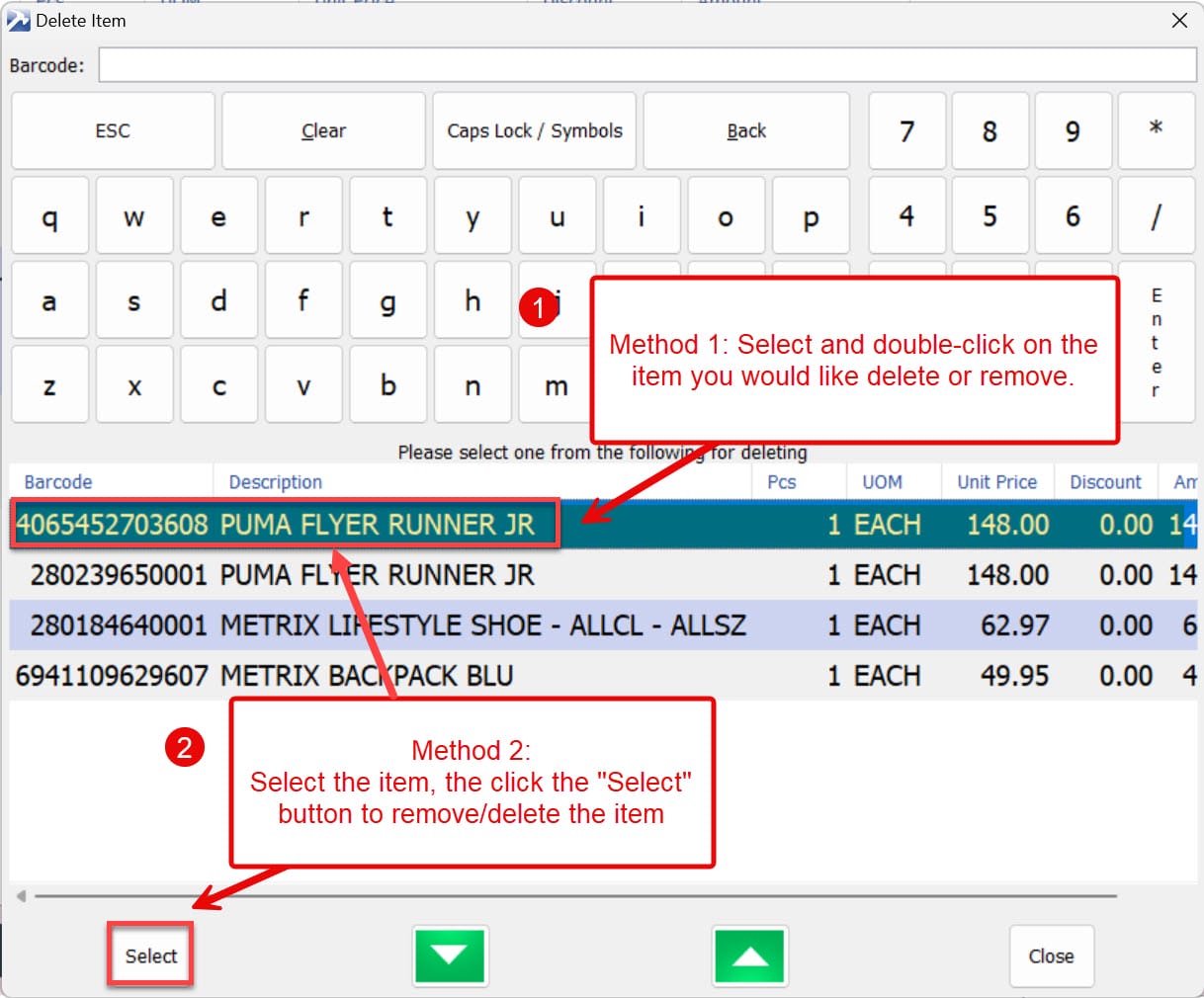 • Alternatively, select the item you wish to delete or remove, then click the “Select” button to proceed.