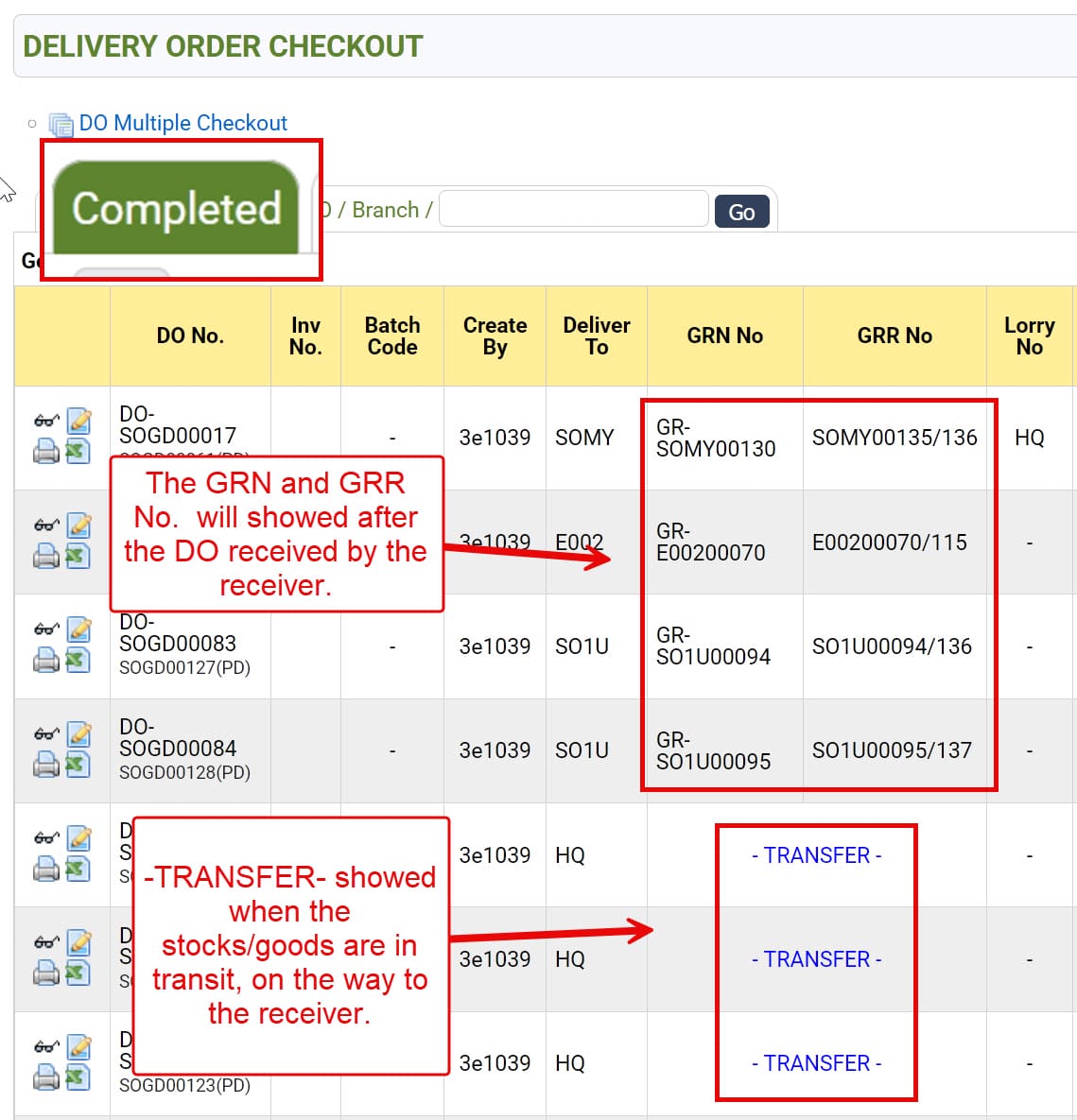 8. After checkout the DO, you can check the status by go to the “Completed” tab.