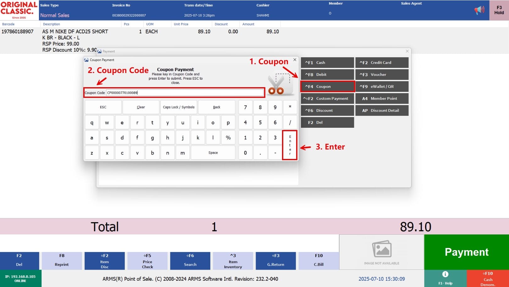 1. Go to Coupon > Enter Coupon Code > Press Enter