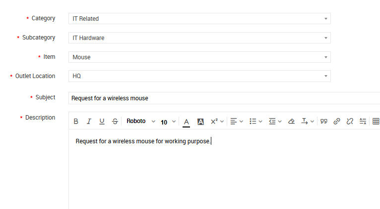 ๐ Example: If you want to request for hardware, select IT Hardware.