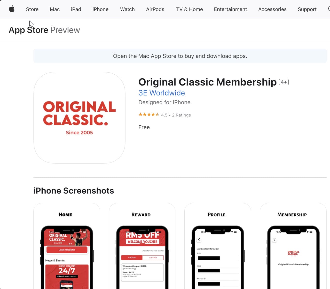 Apple – Go to the Apple Store, search for Original Classic Membership app and install.
