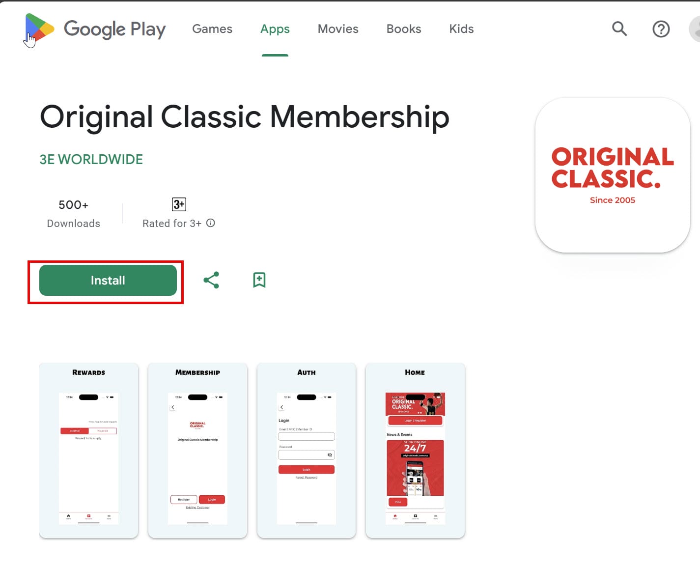 For Android – Go to the Android Play Store, search for the Original Classic Membership app and install.